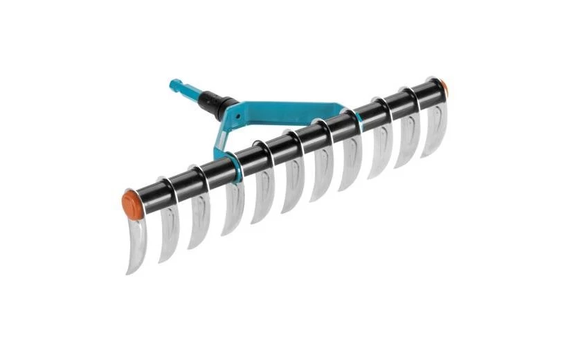 Met de GARDENA combisystem-eenzijdige verticuteerhark kunt u mos en gazonvilt voorzichtig uit het gazon verwijderen en daardoor de opname van lucht, water en voedsel verbeteren. Met zijn verzinkte en geperste tanden en een werkbreedte van 35 cm is deze hark ook prima geschikt voor het fijner maken van aarde en egaliseren. De eenzijdige verticuteerhark is geschikt voor alle stelen van het GARDENA combisystem, waarbij GARDENA een steellengte van 180 cm adviseert, afhankelijk van uw lichaamslengte. De garantieperiode is 25 jaar. Tip: het harken van het gazon is een vorm van onderhoud die het hele jaar, na elke tweede of derde keer maaien, kan worden uitgevoerd.