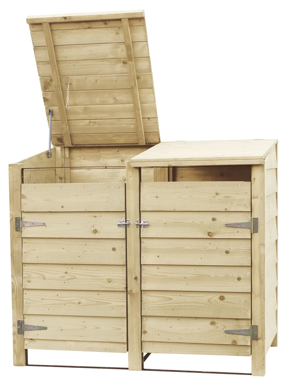 Deze stevige Noord-Europees vuren containerkast wordt geleverd met prefab wanden met Zweeds rabat profiel. Inclusief achterwand, beslag, springveer om de klep open te houden en kettinkje om de containerklep aan te hangen.