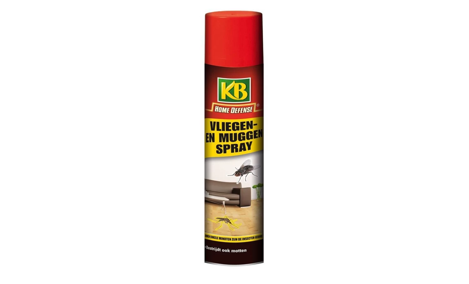 KB Vliegenspray en Muggenspray bestrijdt niet alleen vliegen en muggen, maar ook motten in ruimtes binnenshuis. Binnen enkele minuten is het resultaat zichtbaar.