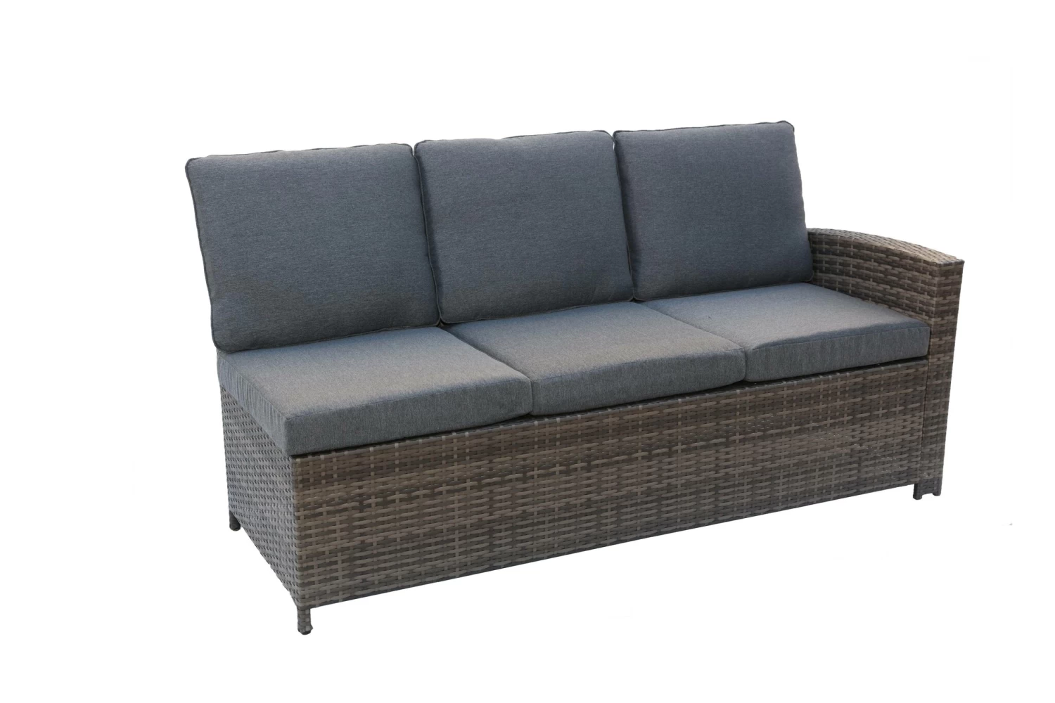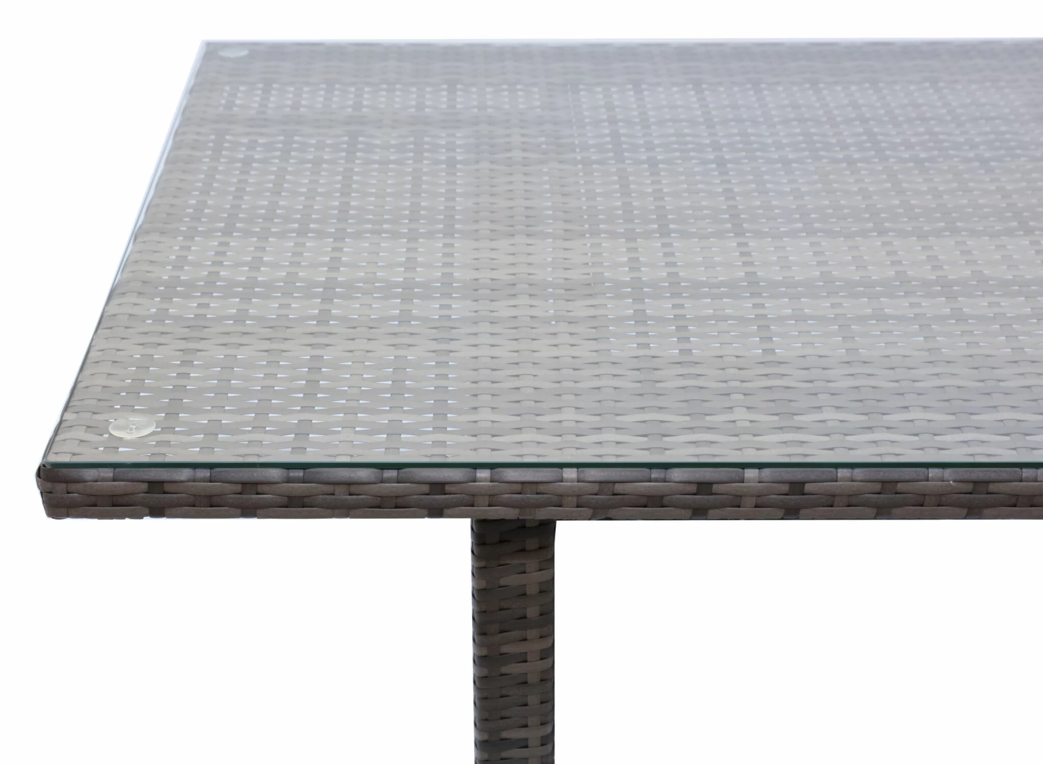 Het binnenframe van de Santorini tuinset is gemaakt van aluminium. Hierdoor roest de set niet en zijn de meubels lekker licht van gewicht. Om het frame is kunststof wicker draad gevlochten. Dankzij de grijs/bruine kleur heeft de set een landelijke uitstraling. De set is niet links en rechts uit te wisselen, kan dus alleen in deze opstelling.