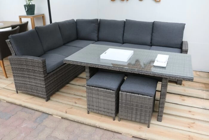 Dankzij de onderhoudsvrije materialen heeft u geen omkijken naar de loungeset. Af en toe afnemen met een vochtige doek is voldoende. Het gebruik van (agressieve) schoonmaakmiddelen wordt afgeraden in verband met eventuele verkleuringen.
