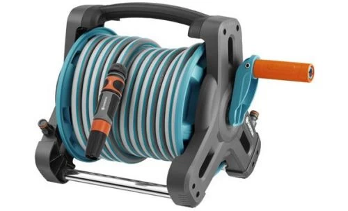De GARDENA Classic slanghouderl 10 compleet is veelzijdig en compact. Door zijn geringe gewicht is hij eenvoudig te vervoeren en een slang is er veilig opgeborgen. De set is compleet gemonteerd en omvat een slanghouder, een 10 meter lange Classic slang met een diameter van 13 mm (1/2″) en alle benodigde GARDENA System aansluitstukken: drie slangstukken (art.nr. 915), twee kraanstukken (art.nr. 900 en 902), een waterstop (art.nr. 913), een aansluitstuk (art.nr. 5305) en een Classic tuinspuit (art.nr. 8114). Daarom is hij ideaal voor zeer kleine tuinen, terrassen of balkons. Dankzij de ergonomische greep kunt u hem overal probleemloos naar toe brengen en gebruiken. Met de vrijlopende zwengel is deze slanghouder eenvoudig te bedienen. U kunt de zwengel ook inklappen. Zo kan de houder plaatsbesparend worden opgeborgen. De zijkanten van de slanghouder hebben de vorm van een driehoek en een laag zwaartepunt. Dat maakt hem bijzonder stabiel en hij zal niet snel kantelen. Zo wordt water geven veel leuker.
